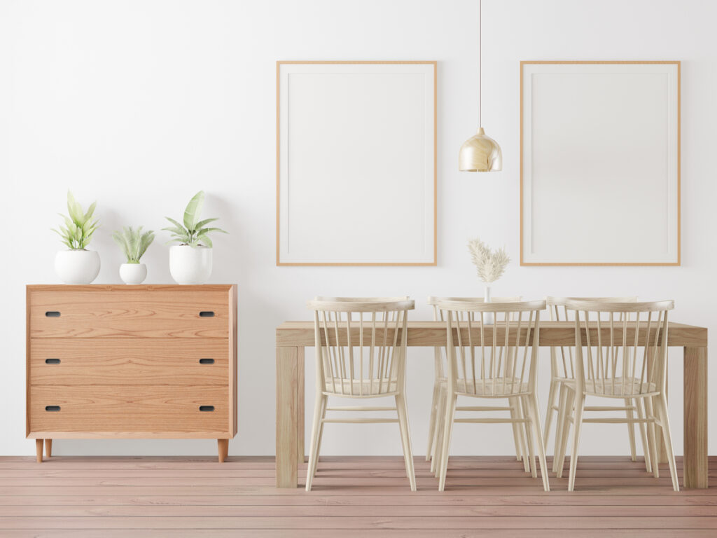 Dining room wall designs and decorative accents bring personality to the space. Mirrors or large statement pieces can make your dining room appear larger and brighter.A minimalist centerpiece, such as a vase of fresh flowers or a decorative bowl, adds elegance without overcrowding the table.