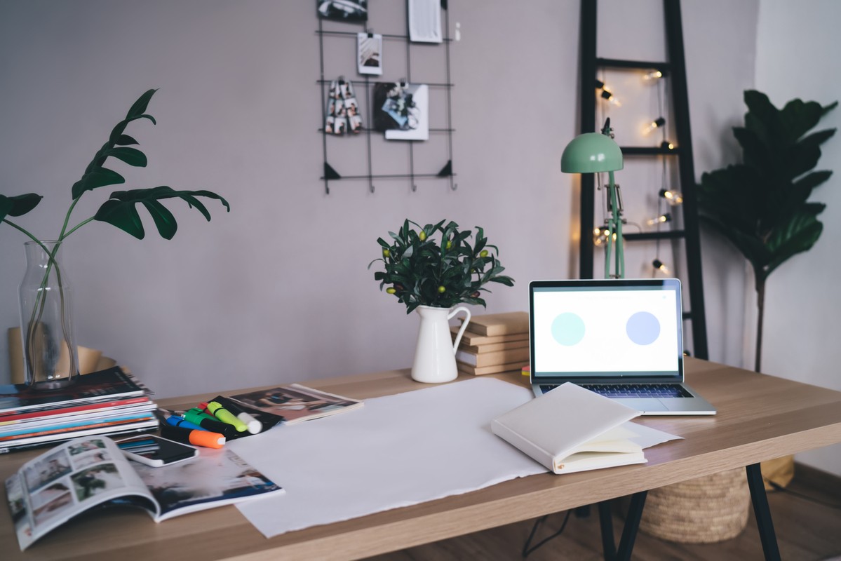 Choose the colors that will bring you into work mode. Specific colors have been shown to impact health and well-being positively. For example, green has been shown to reduce stress and anxiety, while yellow can promote feelings of happiness and optimism. Blue,green and gray shades can help improve focus and productivity. At the same time, red can stimulate the mind and encourage action. Accurate colors do magic in all ways. Hence, it is essential to choose it wisely.