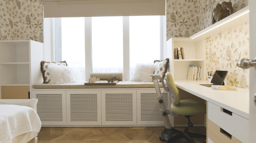 - Floating Desk: Use a floating desk to create a workspace without taking up valuable floor area.